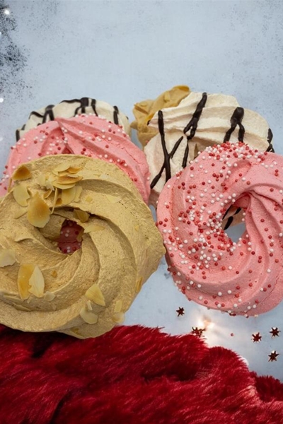 Meringue schuim in de smaken mokka, vanille en marasquin. Deze zitten in een mix verpakt!